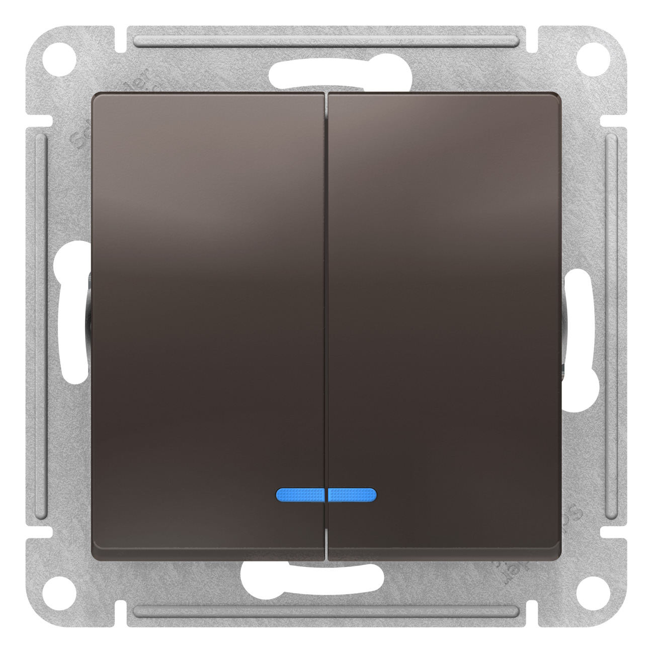 Выключатель двухклавишный AtlasDesign SE с подсветкой мокко