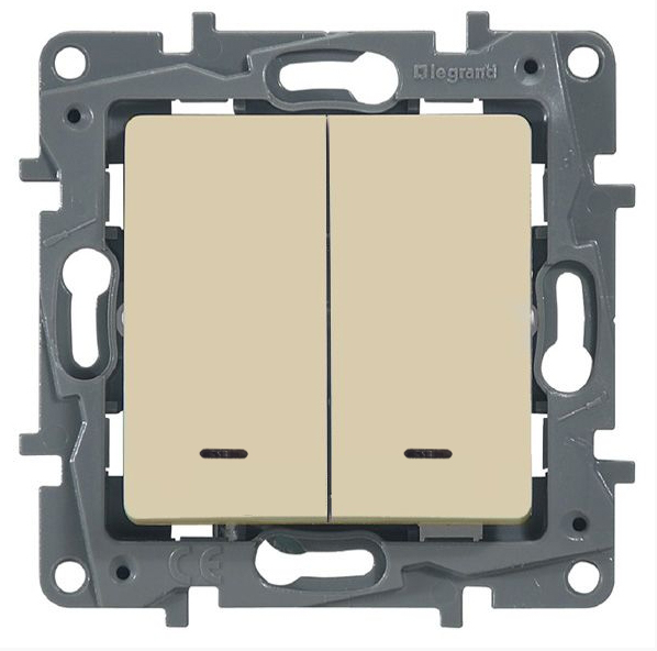 Выключатель двухклавишный ETIKA Legrand с подсветкой крем