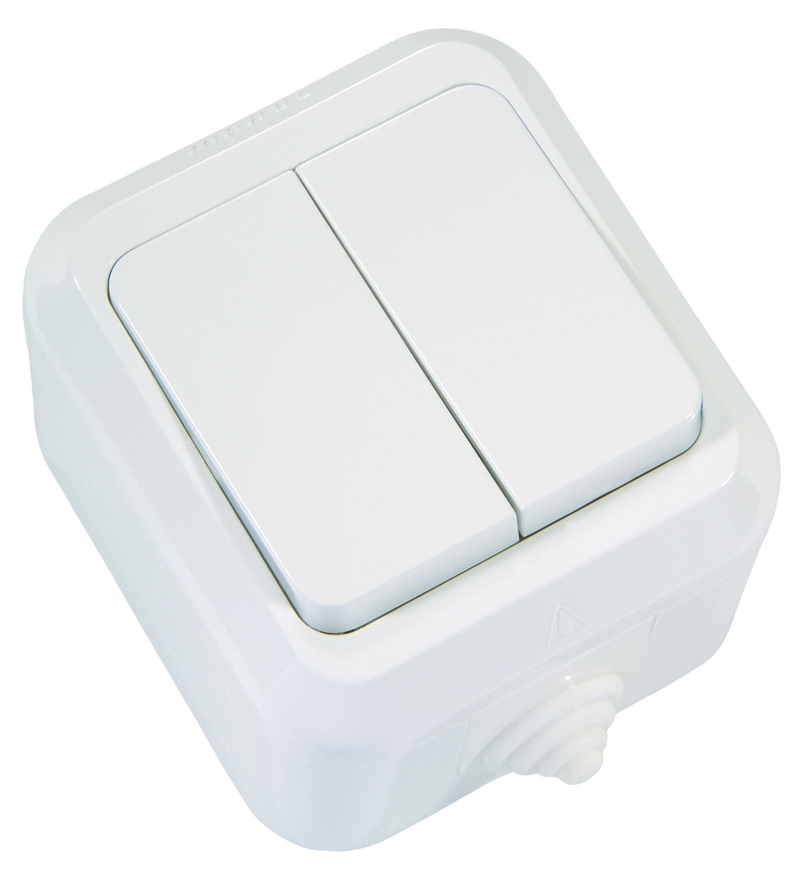 Выключатель двухклавишный накладной IP44 MAKEL белый