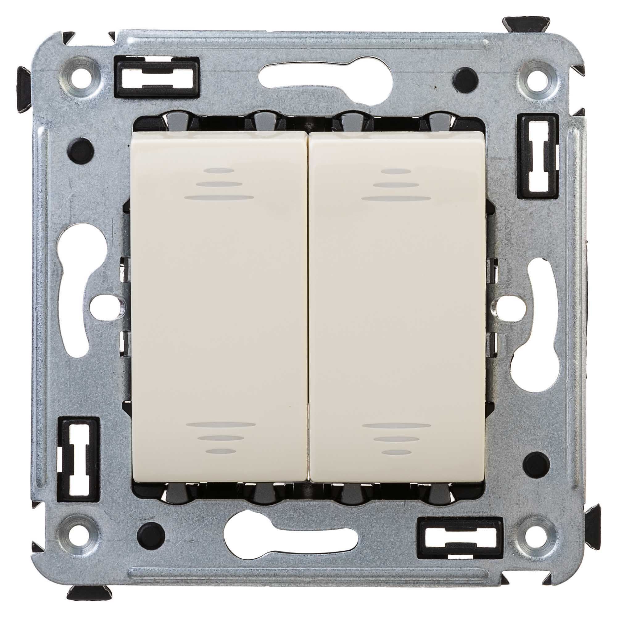Материал: металл, термопласт. Пластиковые элементы изделия имеют цвет "Ванильная дымка" – светлый оттенок из пастельной цветовой гаммы, нежный и умиротворяющий. Он отлично сочетается с теплыми цветами. Количество модулей у устройства – 2.